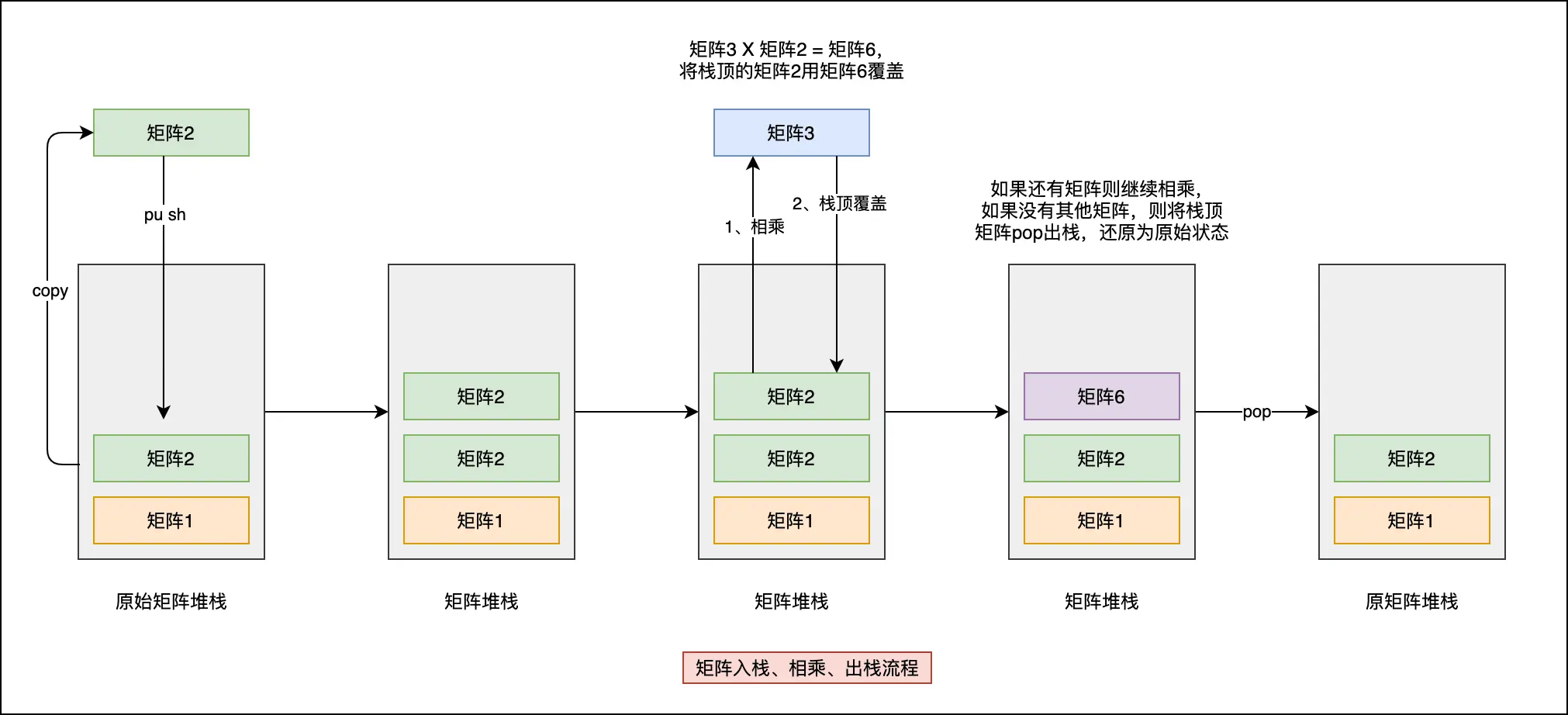 - 如果还有其他矩阵入栈,则继续相乘