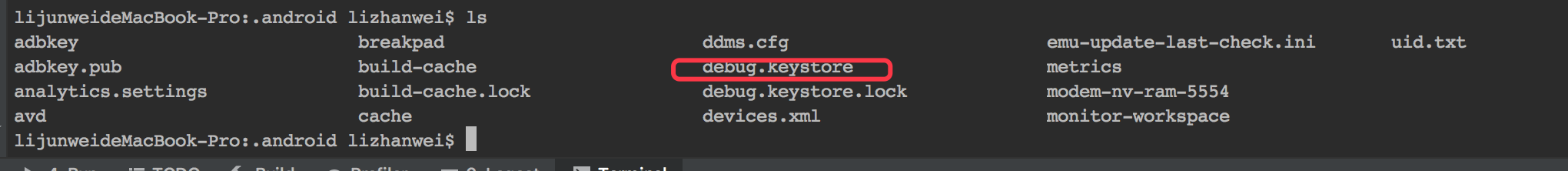 android mac系统获取调试版key及其sha1 endian11 2020-07-20 880 阅读1分钟 调试版的key位置 cd ~//切换到当前用户 cd .android 获取SHA1 keytool -list -v -keystore debug.keystore 默认口令:android 发布版时用的是发布版的keystore