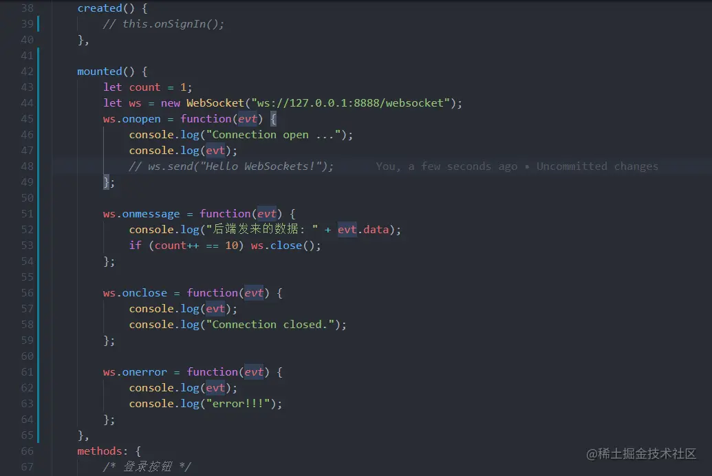 let ws = new WebSocket("ws://127.0.0.1:8888/websocket");