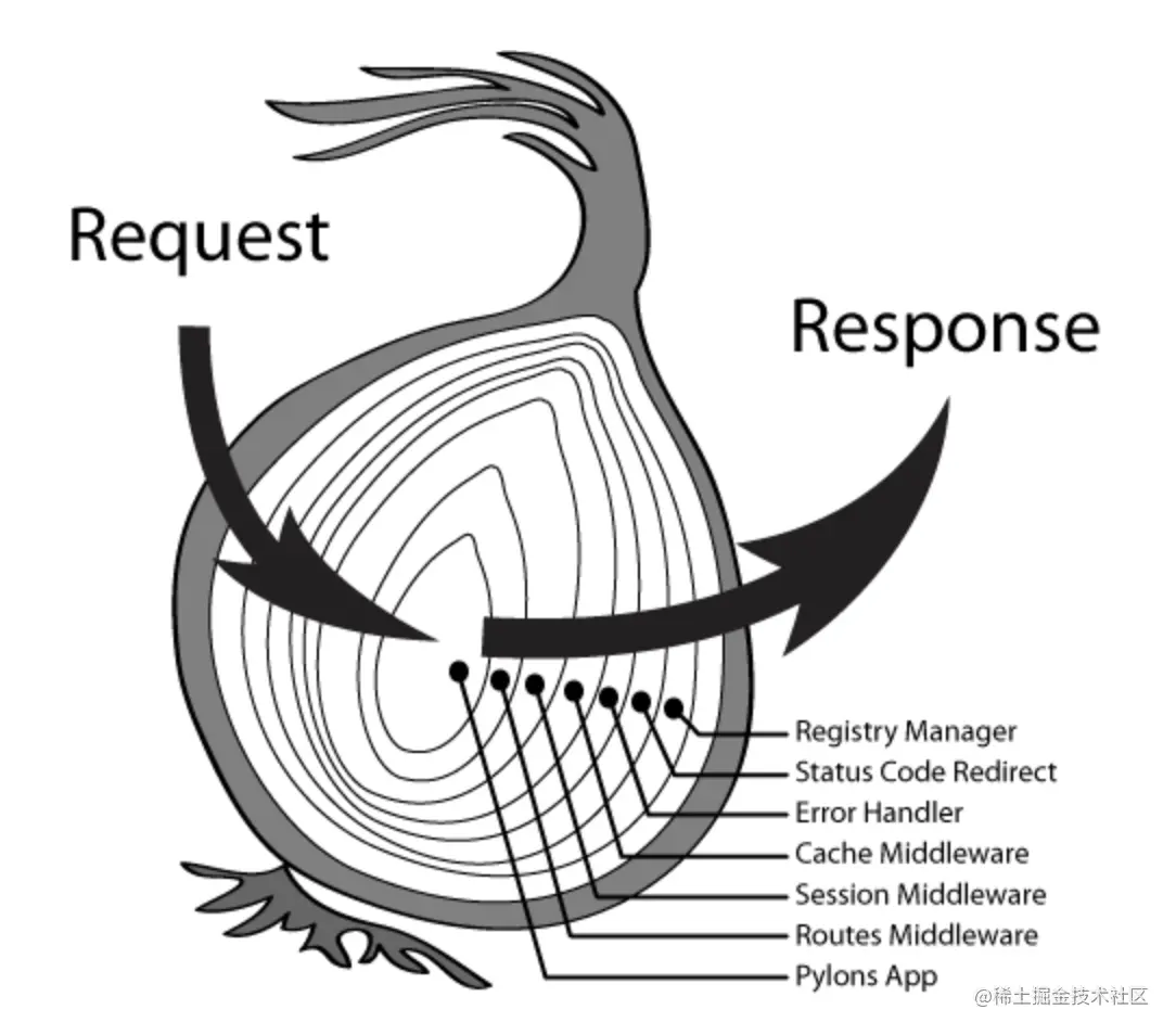 中间件功能是可以访问请求对象(request),响应对象(response)和应用程序的请求-响应周期中通过 next 对下一个中间件函数的调用。通俗来讲,利用这个特性在 next 之前对 request 进行处理,在 next 函数之后对 response 处理。Koa 的中间件模型可以非常方便的实现后置处理逻辑。