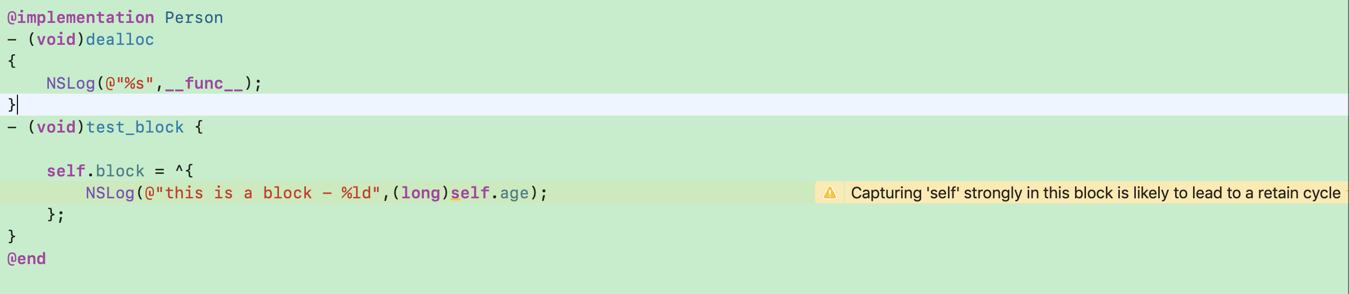 继续再讨论一下循环引用的问题,这个也是block部分面试常被问到的问题, 举一个简单的循环引用的例子: