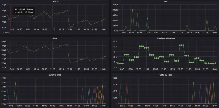 - 基线管理 建立指标基线管理。比如说 state 访问耗时,平时没有延时的时候,state 访问耗时是多少?每个 checkpoint 的数据量大概是多少?在异常情况下,这些都有助于我们对 Flink 的作业的问题进行排查。