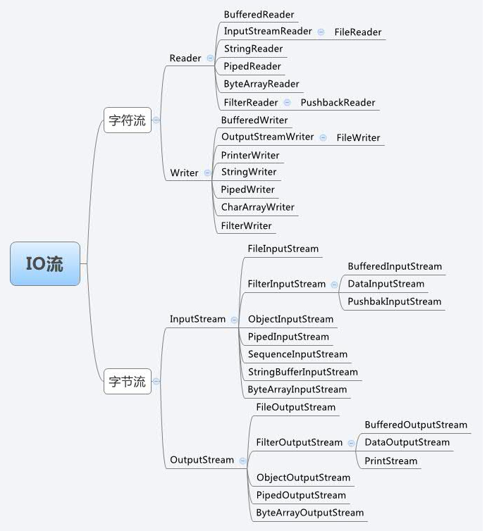 InputStream/Reader: 所有的输入流的基类,前者是字节输入流,后者是字符输入流。
