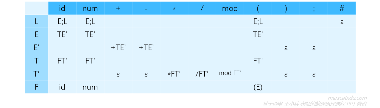 因此, FOLLOW(E') = FOLLOW(E) = { ;, ) };