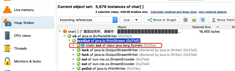 但是把obj1 一reference和obj2 一reference置为null之后,如果显示的去调用System.gc();这里将会发生GC,回收堆中bj1和obj2实体。从而证明Jlava没有采用引用计数算法。