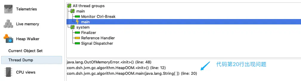 at com.dsh.jvm.gc.algorithm.HeapOOM.main(HeapOOM.java:20)