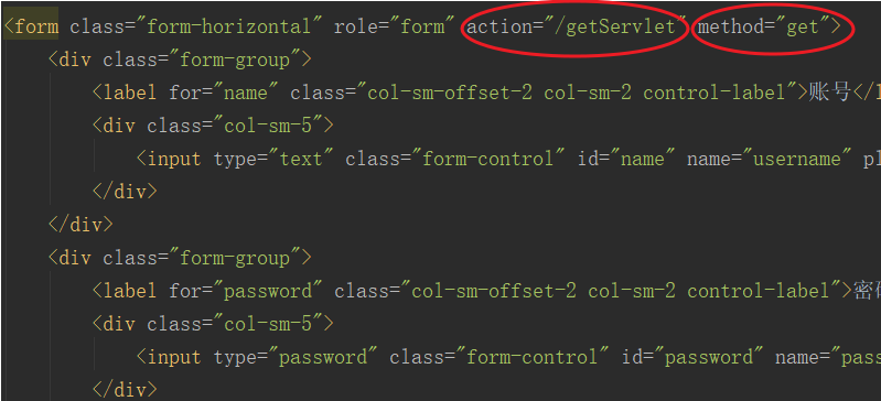 - action:也就是表单提交后会跳转的路径,我这边设置的为“/getServlet”
