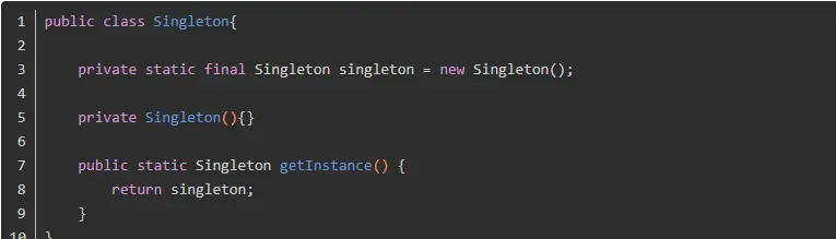 注意上面的代码在第3行已经实例化好了一个Singleton对象在内存中,不会有多个Singleton对象实例存在