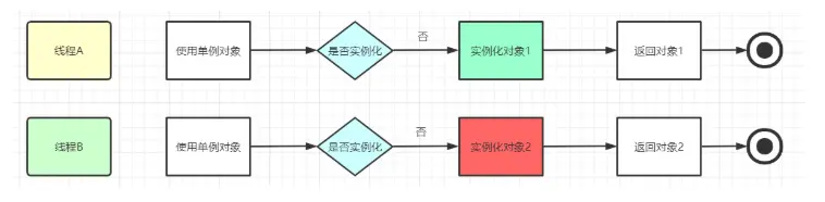 if (singleton == null) { // 其中一个线程进入该分支,另外一个线程则不会进入该分支