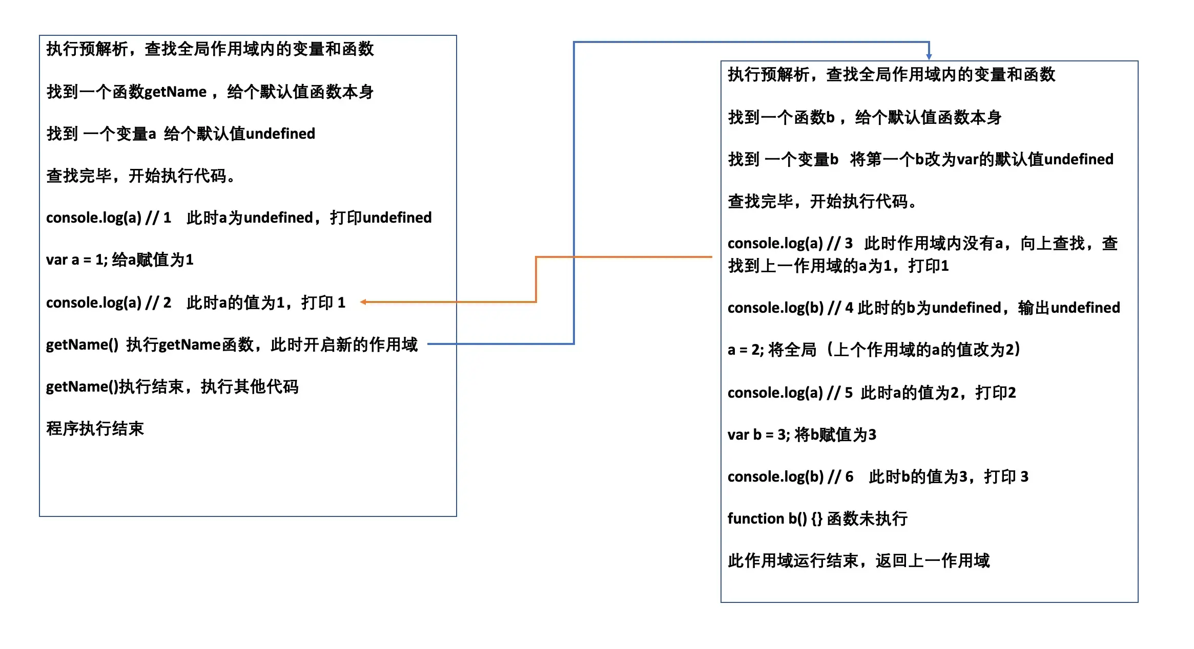 针对上方代码,通过图解的方式看下预解析的执行过程。