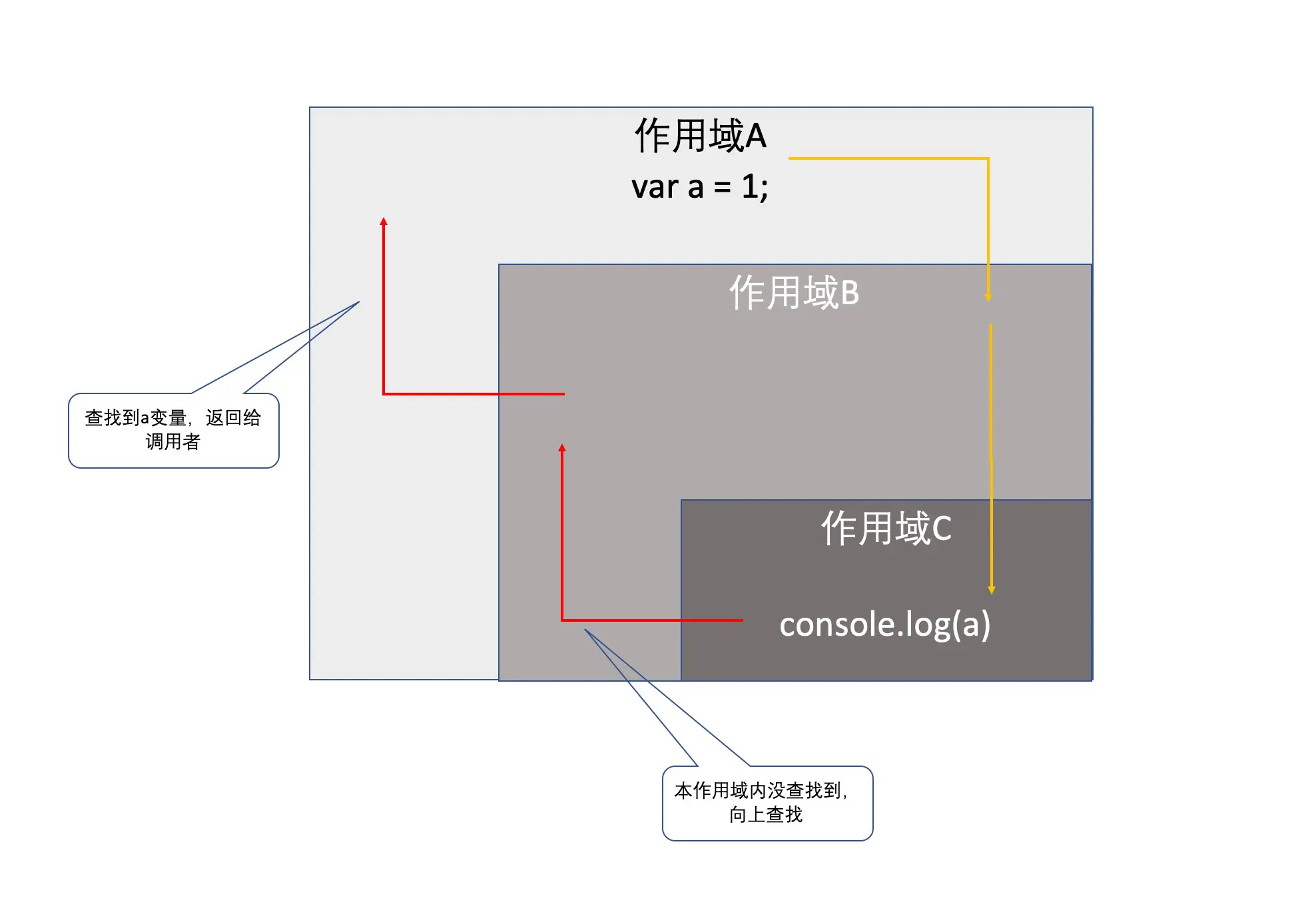 作用域链的执行我们在之前就讲过了,有没有人注意到?有没有?