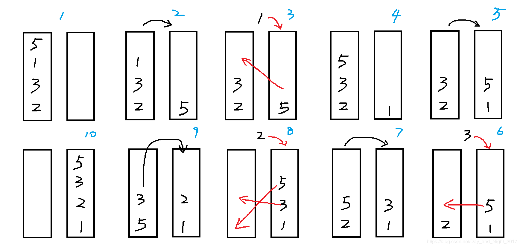 while(!help.isEmpty()) { //最后将反序的help压回stack,顺序就对了