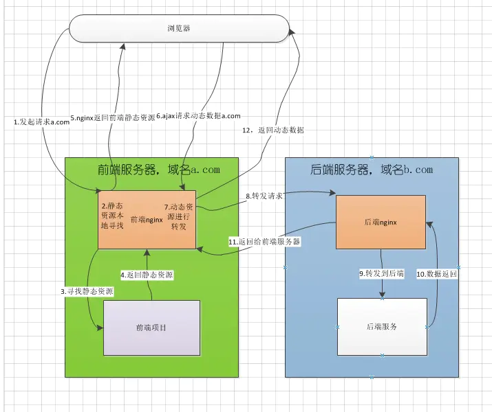 简单理解,就是为了解决跨域问题,先让浏览器将请求发送给当前域名下的 nginx ,然后 nginx 判断 url ,通过匹配发现是动态请求,最后在将请求转发给服务端接口,这样就绕过了浏览器,所以也不会有跨域的问题。