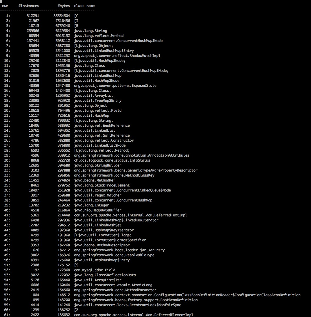 - jmap -histo pid