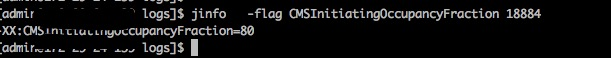 设置或取消JVM参数的值,例如:增加 jinfo -flag +PrintGCDetails 12797, 取消 jinfo -flag -PrintGCDetails 12797