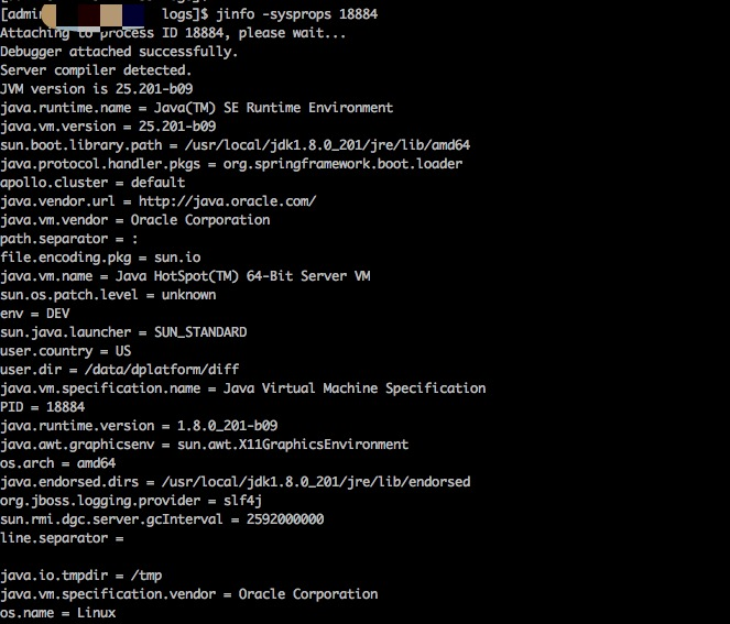 - jinfo -sysprops pid