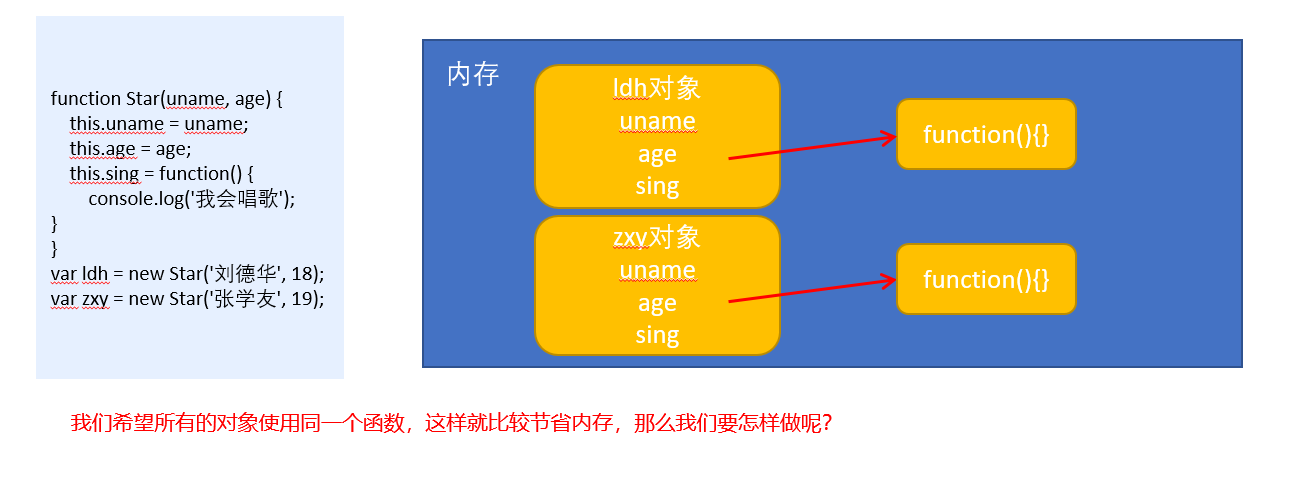 构造函数方法很好用,但是存在浪费内存的问题。