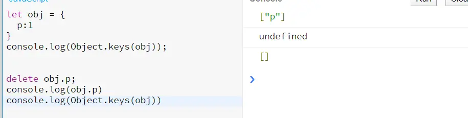 注意,删除一个不存在的属性,delete不会报错,且返回true。所以我们不能根据delete命令的返回结果去判定一个属性是不是存在。