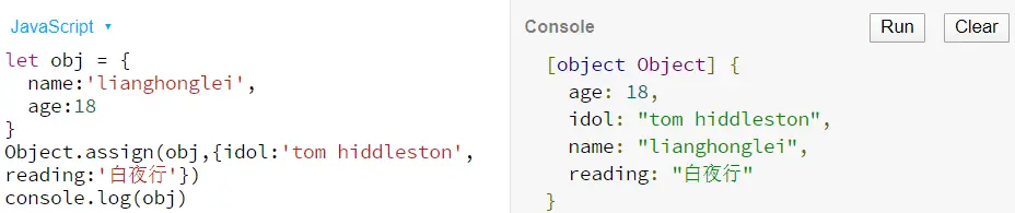 obj['reading'] = '白夜行'; // 添加属性reading如果要批量赋值(一次赋值好多个属性)Object.assign(obj,{需要添加的成员们})