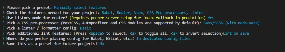 创建vue项目 zclin 2020-07-18 146 阅读1分钟 vue create <文件名> 配置 若报错 可尝试重新安装 node-sass ↓ 进入新建项目文件夹 cnpm install node-sass --save-dev npm run serve启动项目