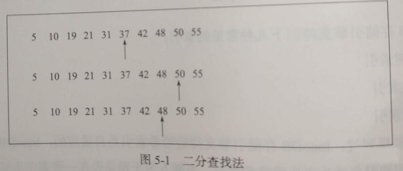 又称为折半查找法,指的是将数据顺序排列,通过每次和中间值比较,跳跃式查找,每次缩减一半的范围,快速找到目标的算法。其算法复杂度为log2(n),比顺序查找要快上一些。
