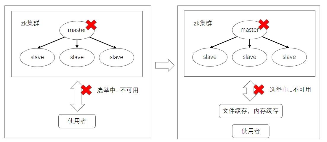 由于ZooKeeper在CAP原理(C-数据一致性;A-服务可用性;P-服务对网络分区故障的容错性,这三个特性在任何分布式系统中不能同时满足,最多同时满足两个)上只能满足CP(数据一致和分区故障容错),zk在master节点故障的时候整个zk服务选主过程不可用,因此会有稳定性问题。
