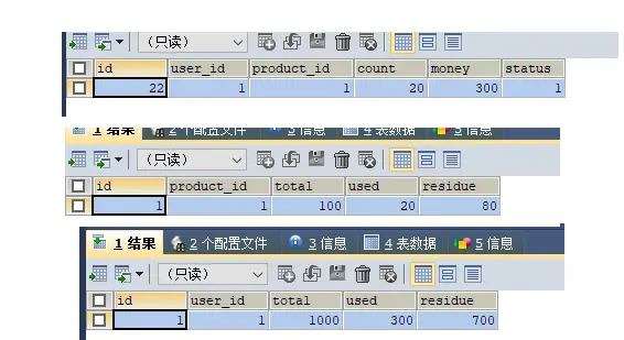 测试后:下单后数据库数据没有任何改变