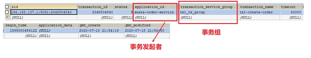 3. seata库的三个表此时是有数据的