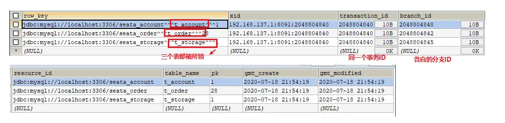 三张表:分支,全局,锁