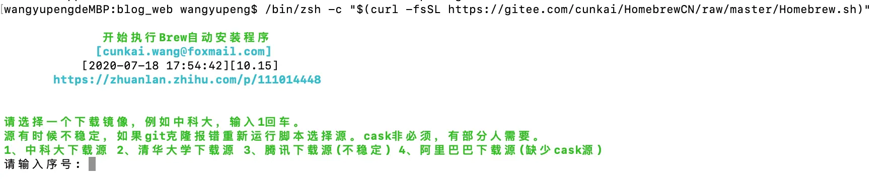 这时,你就需要安装brew命令,网上好多的教程的下载源都是国外的会很慢,