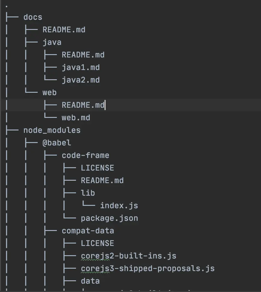 说明:这个命令的意思是,将项目的树形目录结构导入到tree.txt文件中