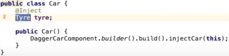 - 调用自动生成的桥接类DaggerCarComponent就可以注入Car的这个属性Tyre。