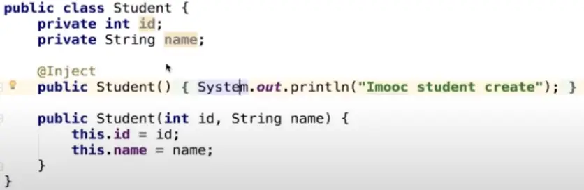 - 用@Inject标注构造注入的成员变量Student的构造方法