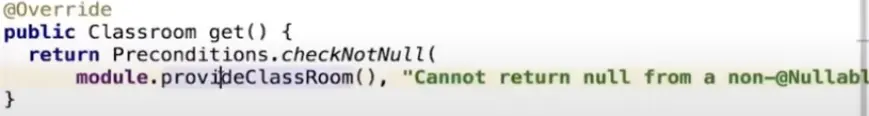 - DaggerCollegeComponent会相应自动生成产生Classroom对象的provideClassRoomProvider和产生Student对象的provideStudentProvider