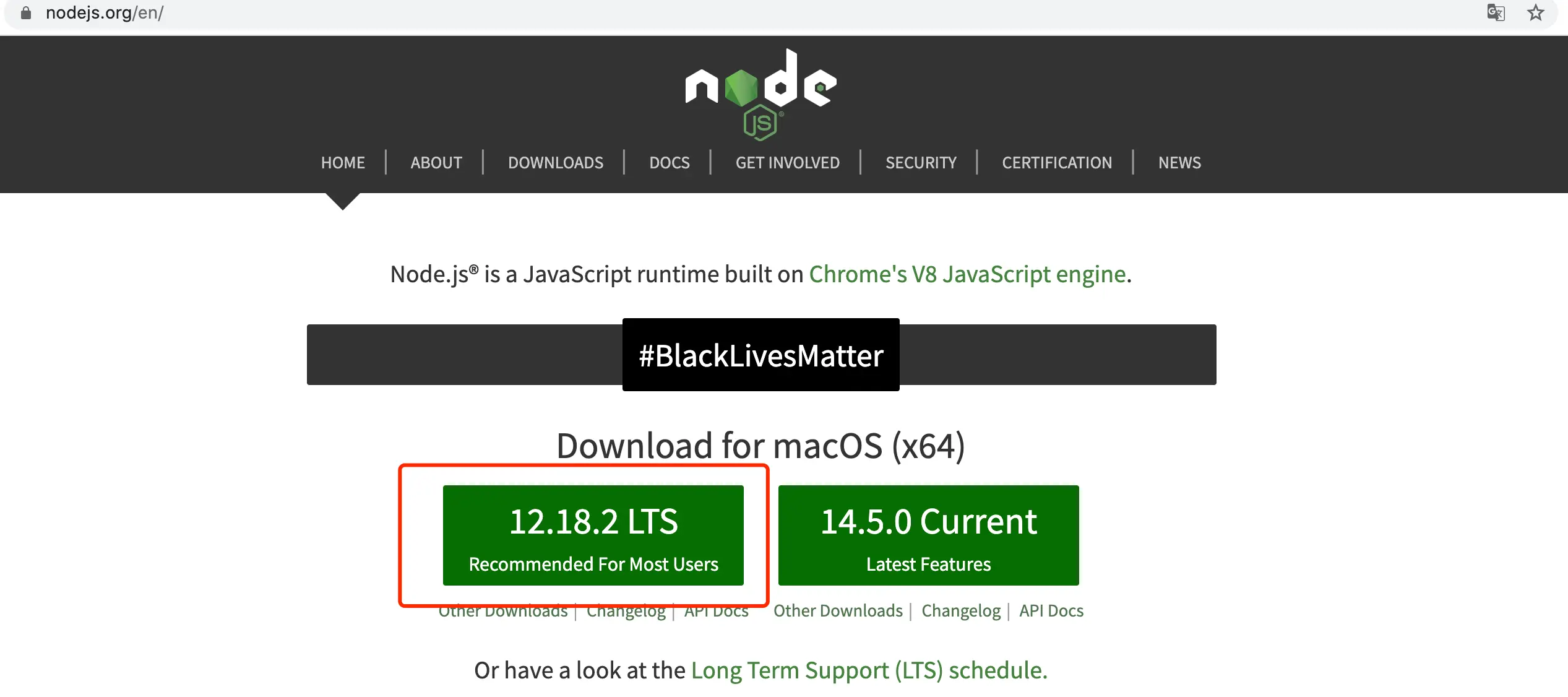 登录nodejs官网:nodejs官网