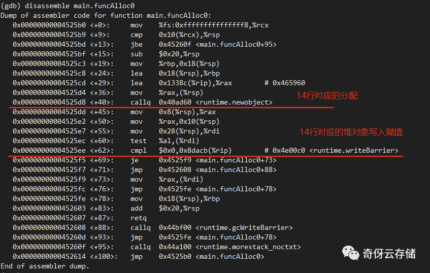在合适的位置,编译器给你程序添加的指令函数 runtime·gcWriteBarrier ,这个就是入口,每次堆对象赋值,如果开启了垃圾回收开关,都会去里面转一圈。