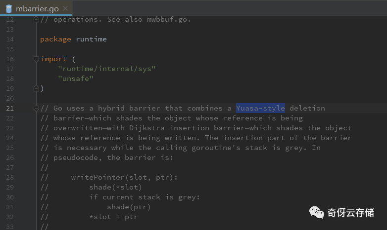在 golang 源代码 mbarrier.go 里面有详细说明,但是提一点,golang 的实际实现其实做了一个简化,把 if 条件判断去掉了,这样的实现更简单,精度差一些。