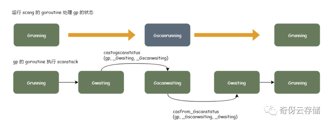 _Grunnable,_Gsyscall,_Gwaiting): - 首先,goroutine 设置上 Gscan ;