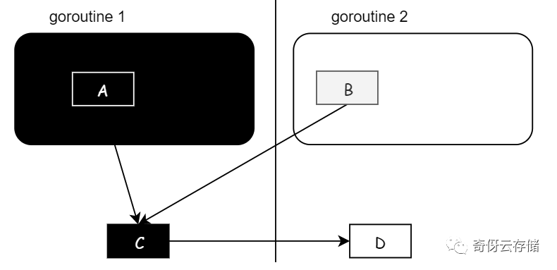 - goroutine 1 对象 C;