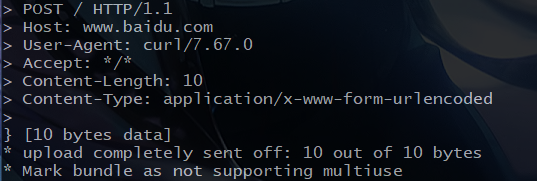 curl -X POST -d "1234567890" -s -v -- "www.baidu.com" GET请求和POST请求的区别:GET请求是指一般单向的服务器请求数据而POST请求可以上传数据比如上传账号密码等