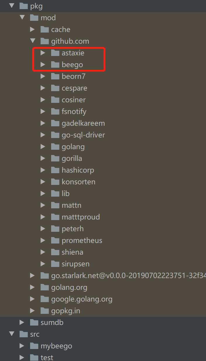 通过前一篇文章通过代理下载Beego框架 我们下载好了框架源码包,可是有没有发现这个源码包他并没有出现在$GOPATH/src目录下面,而是在$GOPATH/pkg目录下面: