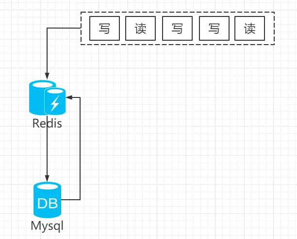 - 读的时候,先读缓存,缓存没有的话,就读数据库,然后取出数据后放入缓存,同时返回响应。