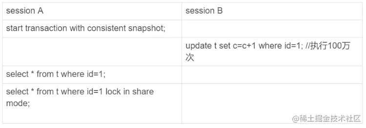select * from twhere id=1 lock in share mode;