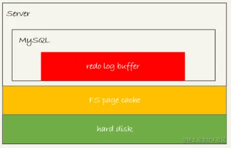 InnoDB 有一个后台线程,每隔 1 秒,就会把 redo log buffer 中的日志,调用 write 写到文件系统的 page cache,然后调用 fsync 持久化到磁盘。