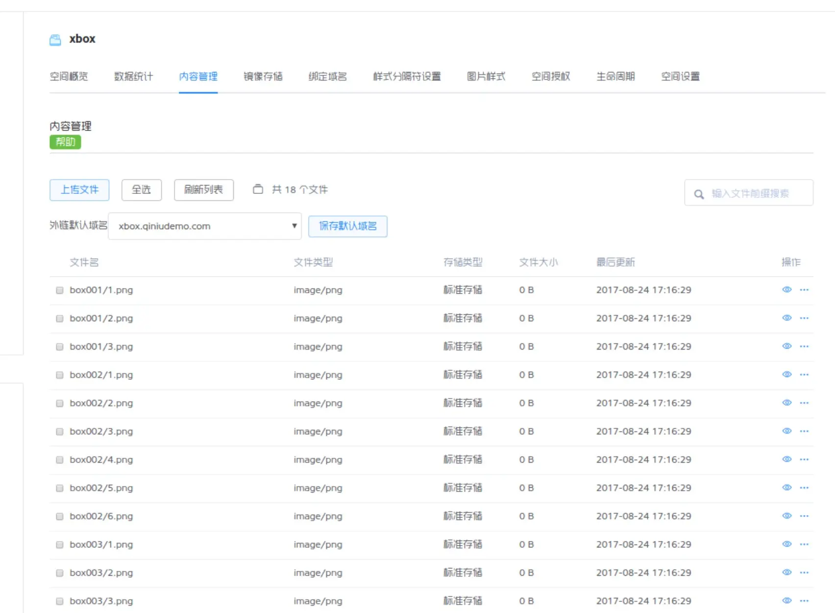 控制台查看资源 到七牛云控制台进入空间 xbox