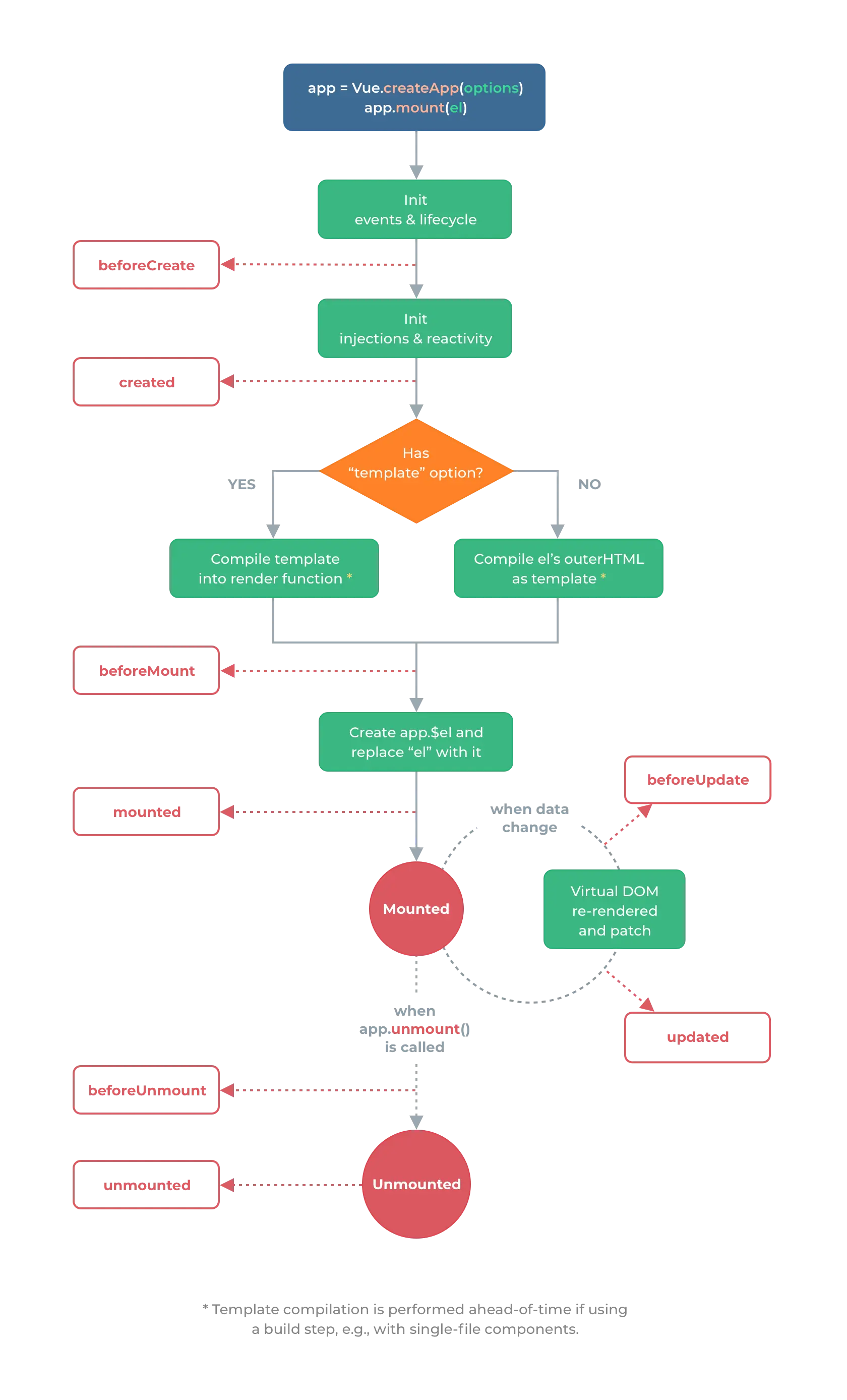 Vue.createApp(/* options */).mount('#app')