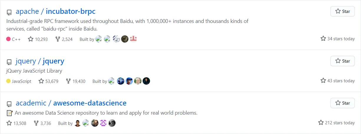 如果想成为大牛,这个网站是强烈推荐给大家的,如果你有个项目托管在这个平台,而且星标超过 1W,那这可以算是业界的大牛了。