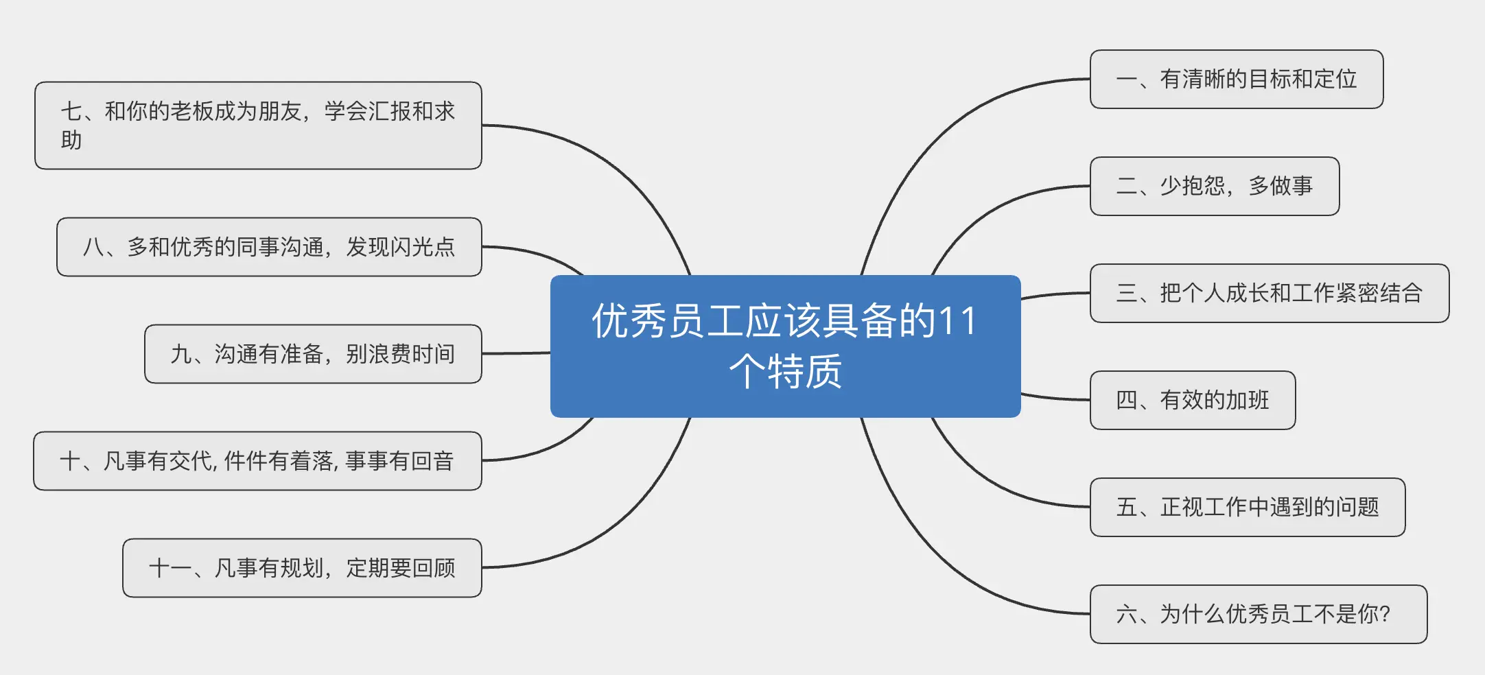 这篇文章中我在 “工作” 与 “沟通” 方法这两个模块下总结了优秀员工的 11 个特质,聊聊我这些年流下的血泪,希望大家少走一点弯路