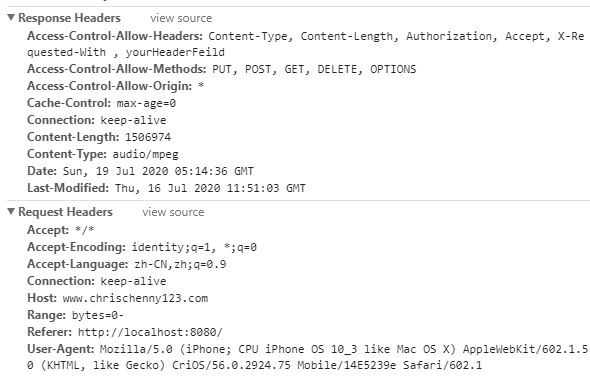 进过之后的调试,发现IOS和安卓在请求头上的区别,安卓的请求头字段是这样的:"Range":"bytes=0-",这个什么意思,直白的翻译:“我要问你要文件,从第0bytes开始要,给多少么,看你的心情。”那服务器不就大大方方把数据给你了么。