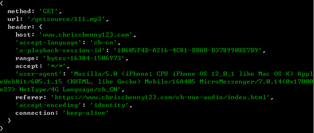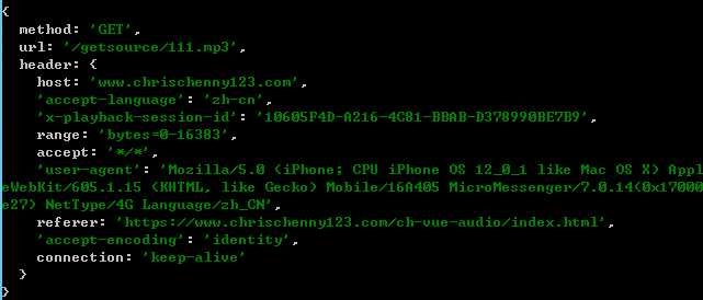 那么,IOS如果需要获取音频大小的信息,但是它不认Content-Length头(当然也可能是拿这两个字段进行校验??),那么自然只能从Content-Range中来了。。。(= =;真奇怪,人家明面上告诉你的 你不要,非要自己再去解析)而上述三个格式只有第一个是带文件大小的,那么就很明确了。所以后端的接口就不能是直接静态来访问了,而是要动态的相应IOS的需求,并返回相应的响应头了,可以参考以下代码,用koa框架: